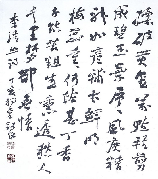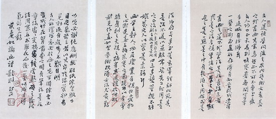 8月10日至16日,张锡良书法展在艺术玩家品画馆如期举行。其中一幅12米的《古诗十九首》行草书法长卷吸引了许多书法美术爱好者驻足观看。当本报记者问及此幅气势酣畅的书法作品相关情况时,书法家张锡良对记者侃侃而谈:“我创作这幅作品的原始欲望与冲动,其实是缘于我看到沈鹏先生的草书《古诗十九首》。我去江苏江阴时,看到了沈鹏先生的那幅长卷,内心便跃跃欲试。回家后,我花了差不多半天的工夫,一气呵成。”据悉,张锡良先生的这幅书法完成后,他又特意寄给了沈鹏先生想请他题签,展览前的一个星期,这幅书法经我国著名书法家沈鹏的题签后,再次寄回了长沙。