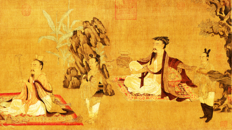 圆视艺术:古代书画欣赏《高逸图》又名《竹林七贤图》唐代孙位作上海博物馆藏
