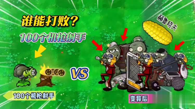 植物大战僵尸:100个机枪射手VS变异僵尸
