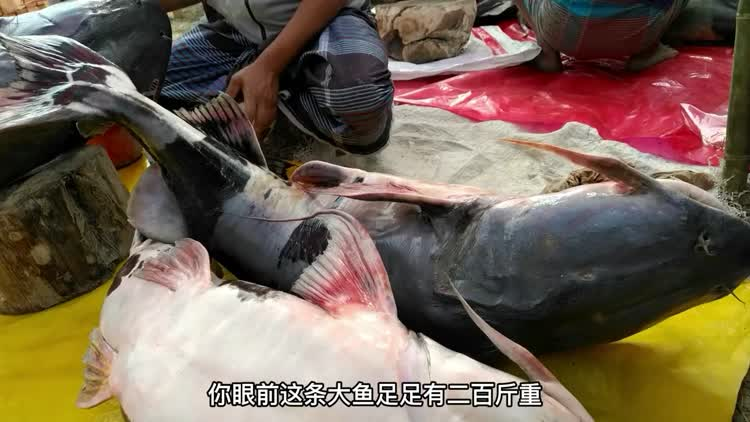 高手在民间!印度大叔现砍200斤鲶鱼,这么大的鱼,令人耳目一新.