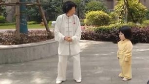西西跟奶奶打太极,看她穿上不合身的衣服,直接笑翻众人!丨爸爸