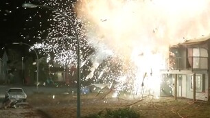 《铁血战士》片段:铁血头盔自动反击炸毁房子